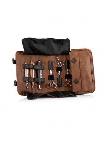 Astuccio portastrumenti da barbiere con maniglia e richiudibile su se stesso, ideale per riporre gli strumenti da lavoro.