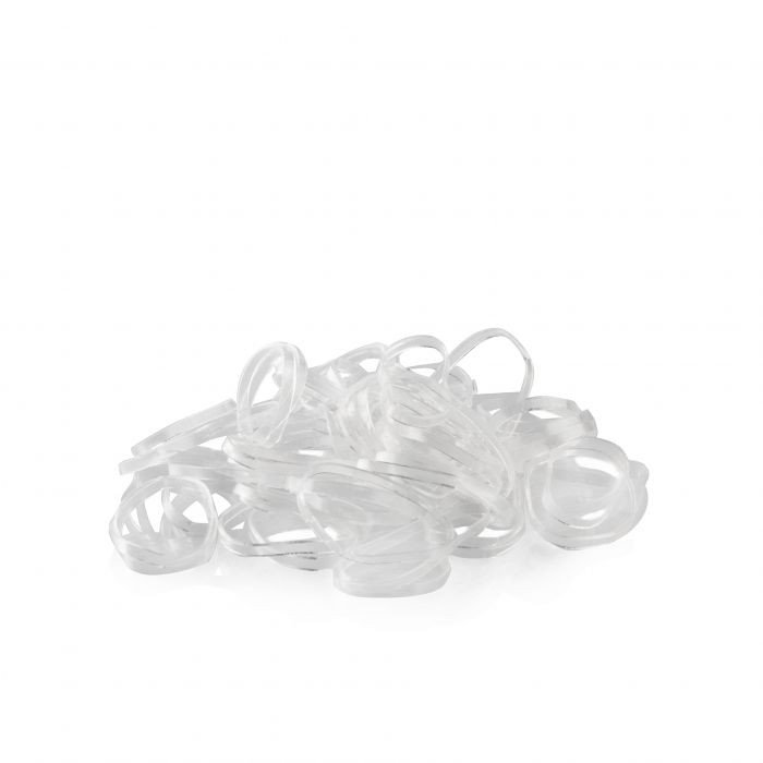 Elastico per capelli piccolo in PVC. Diametro 15mm Colore trasparente Confezione da 300 pz. circa Box 12 tubi