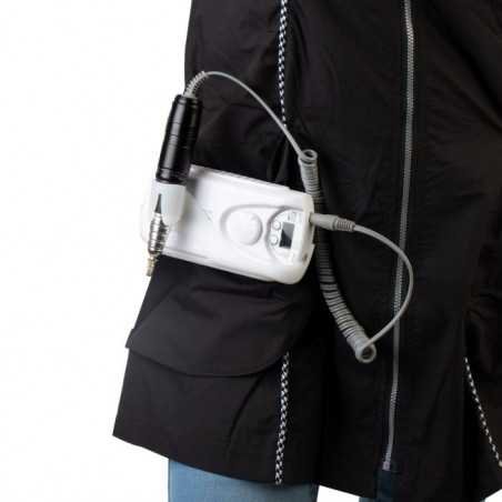 Finalmente il micromotore professionale portatile che tutte le estetiste aspettavano! La comodità è quella di poterlo agganciare alla cintura o alla tasca del grembiule, oppure addirittura riporlo nel taschino, e lavorare agilmente e liberamente per manicure o pedicure con le stesse prestazioni di un micromotore tradizionale. Ottimo strumento ovviamente anche per chi lavora a domicilio.