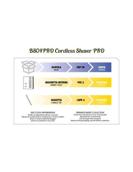 La batteria al litio offre un'autonomia di utilizzo di 160 minuti e si ricarica completamente in soli 65 minuti, permettendo un uso continuo senza interruzioni. Il rasoio può essere utilizzato sia con cavo che senza, offrendo massima flessibilità. Con dimensioni compatte di 6,3 x 11,9 x 3,5 cm e un peso di 208 g, è facile da maneggiare e trasportare.